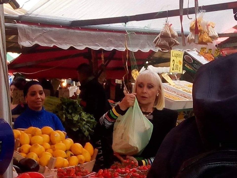 Prima ha acquistato frutta e verdura, poi ha fato una foto di rito fra le bellezze del quartiere.