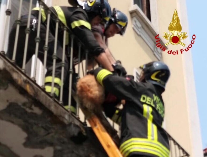 I pompieri si sono arrampicati sul balcone, hanno rotto un vetro e salvato l’animale, visibilmente provato.