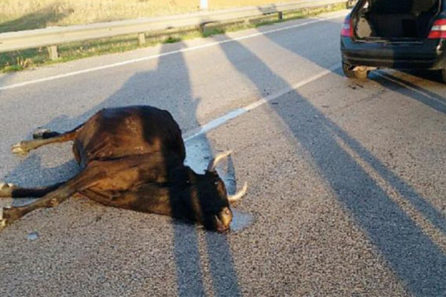 A causa della violenza dell’impatto l’automobile si è ribaltata, le due mucche sono morte.