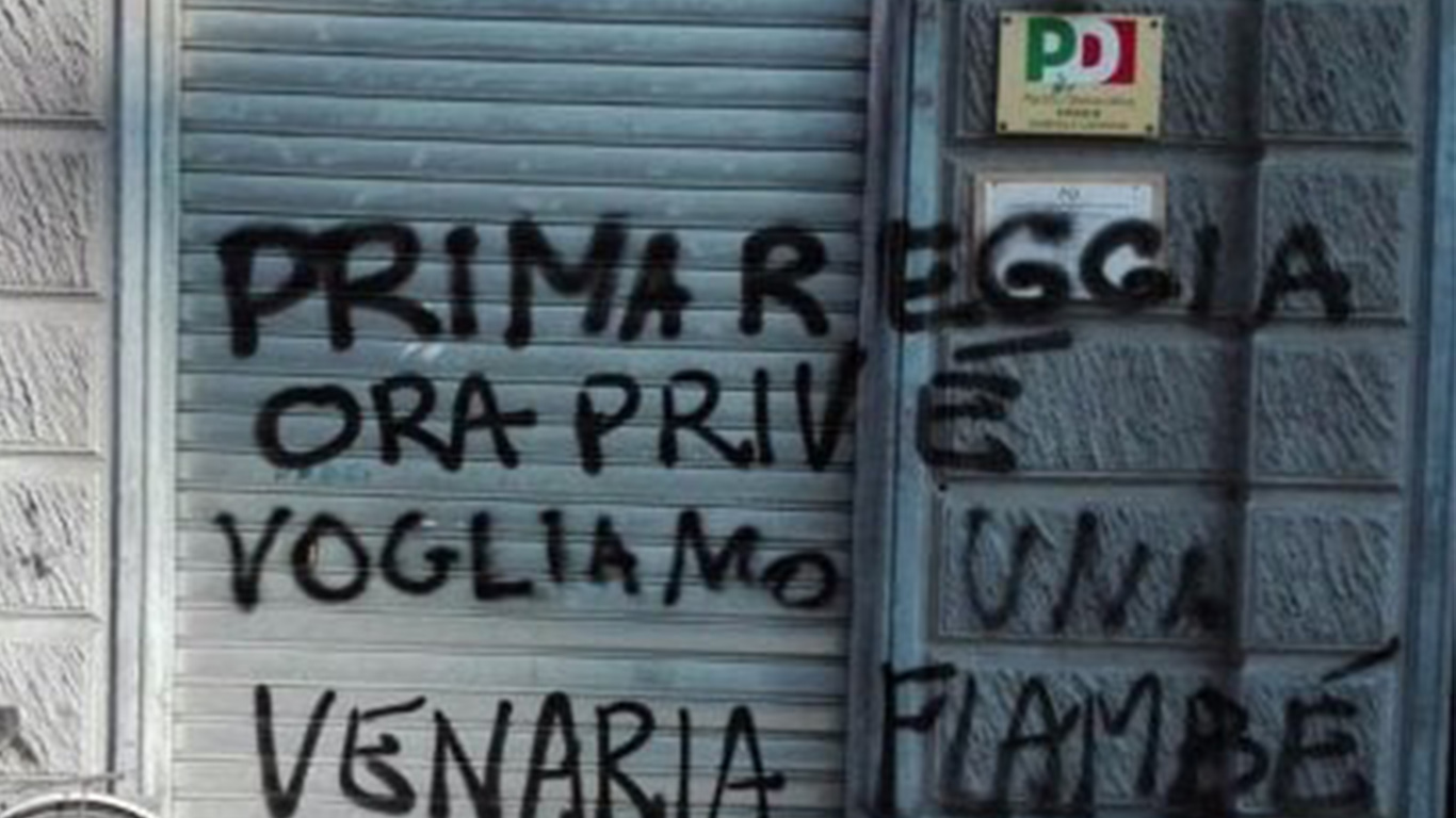 G7, “Vogliamo Venaria flambé” – La scritta comparsa al Circolo Pd di via Di Nanni
