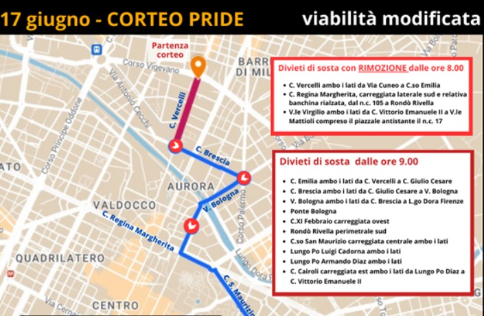 Il corteo partirà intorno alle ore 16.30 da corso Vercelli, nel tratto compreso tra corso Novara e corso Emilia, dove già dalle ore 14.00 è prevista la presenza di partecipanti. La manifestazione si muoverà in direzione del Parco del Valentino, dove è previsto l’arrivo intorno alle ore 20.00.