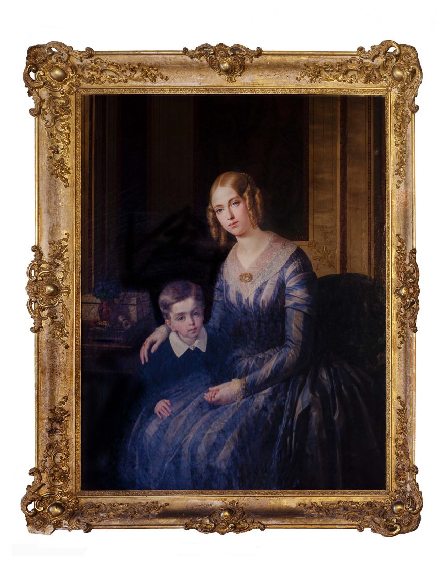 L’immagine simbolo della mostra è il grande ritratto di Erminia Provana del Sabbione con il figlio (della nobildonna è esposta anche una treccia di capelli biondi), accanto ad altri ritratti di membri della nobiltà piemontese del tempo. Due grandi tele, commissionate dal duca di Genova a Francesco Gonin, rappresentano la battaglia di Torino del 1706.