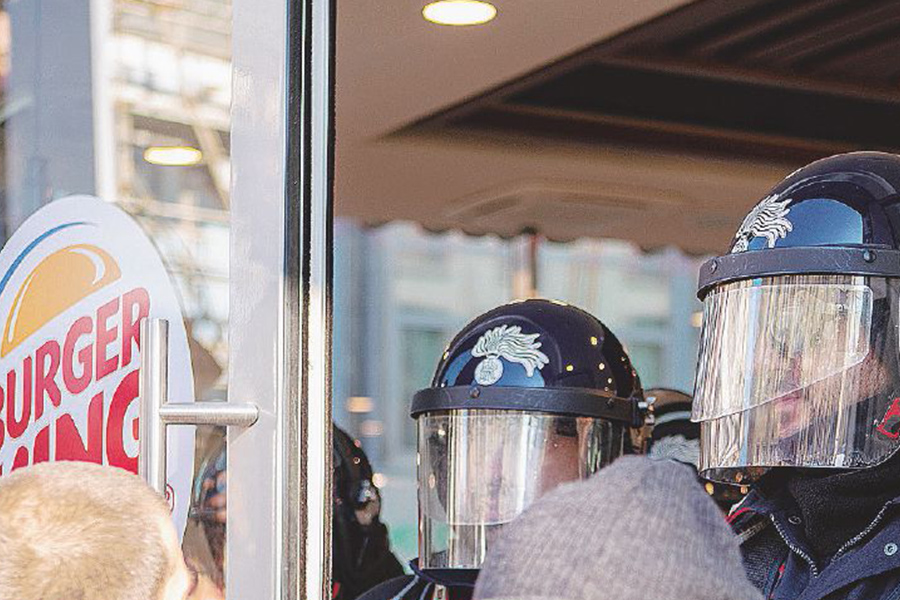 Oltre un centinaio i giovani dei collettivi studenteschi hanno occupato gli spazi del Burger King e sono stati poi allontanati dagli agenti della Digos.