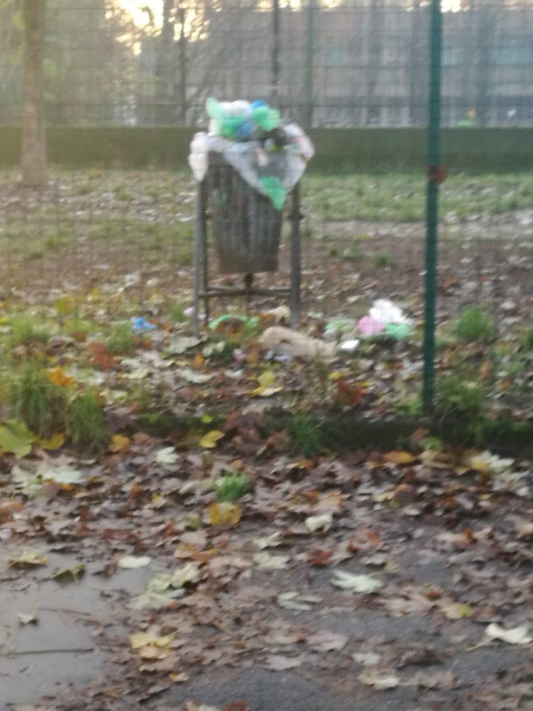 Cestini ricolmi di rifiuti che debordano in quantità all’interno dell’area senza essere svuotati. Numerose buche all’interno della zona, pericolose anche per i padroni, magari anziani, che portano a passeggio il proprio cane.