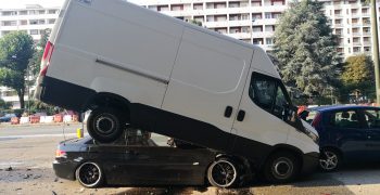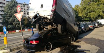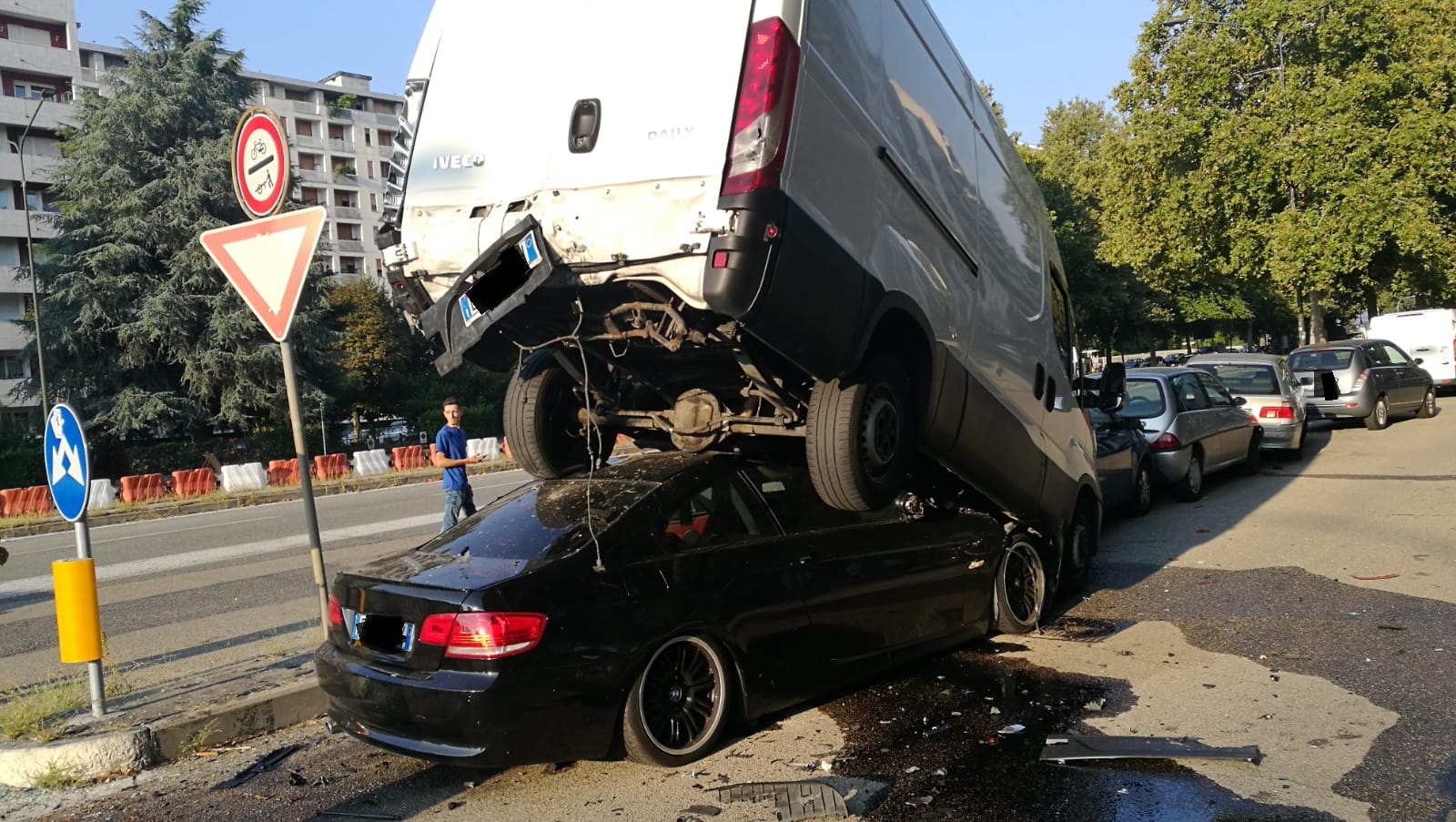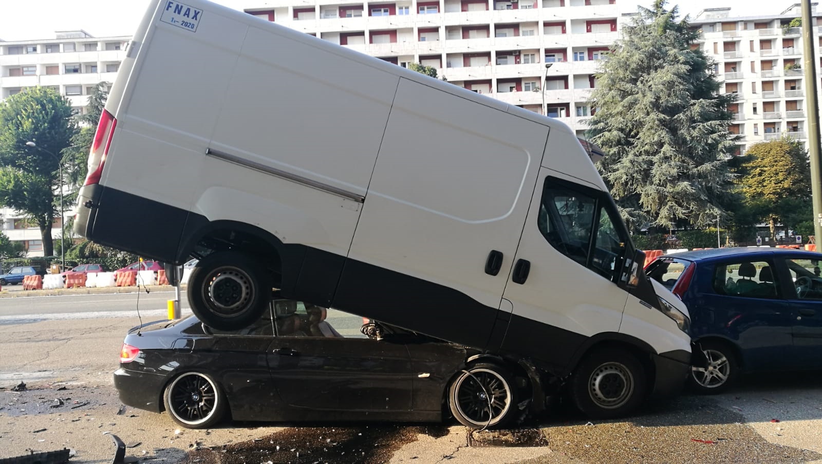 Il conducente, cittadino di nazionalità rumena di 24 anni, a causa della velocità, ha perso il controllo del veicolo andando a sbattere contro cinque macchine regolarmente in sosta e terminando la corsa, infilandosi sotto un furgone. Incredibili le immagini dell’incidenti, che nell’imminenza avevano fatto pensare anche il peggio, nel vedere la Bmw schiacciata dal furgone.