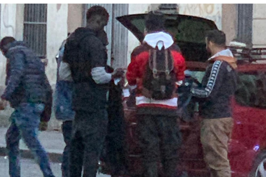 All’arrivo di un’auto, carica di vestiti, gli spacciatori si avvicinano. Questa volta sono loro a contrattare sul prezzo di acquisto. Poi se ne vanno col capo d’abbigliamento scelto.