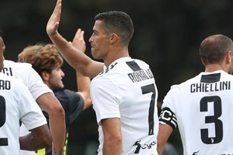 Poi, finalmente, la parola è passata al campo, dove Ronaldo ha iniziato a dispensare spettacolo con le sue giocate di classe: sono bastati 8 minuti per vederlo andare a segno: il suo sinistro su assist di Bernardeschi batte il portiere avversario Loria e fa esplodere lo stadio.