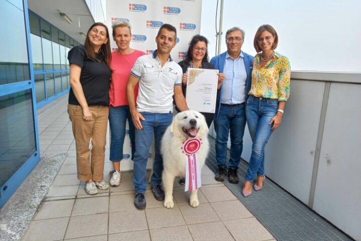 Si chiama Cafaggio, è un Pastore Maremmano Abruzzese ed è il cane più bello del mondo. Vive a Castellamonte, in provincia di Torino, ha compiuto 6 anni nel mese di settembre e si è laureato campione iridato per razza e bellezza al World Dog Show, la massima competizione cinofila mondiale, che si è svolta a Ginevra nello scorso mese di agosto. Nel pomeriggio del 5 ottobre Cafaggio ha fatto visita alla sede di corso Inghilterra della Città metropolitana di Torino, per ricevere, sul terrazzo del 15° piano, le coccole e i complimenti dell’amministrazione. Le motivazioni dei complimenti sono sintetizzate in una pergamena che i Consiglieri delegati Sonia Cambursano, Valentina Cera e Pasquale Mazza e la Consigliera metropolitana Rossana Schillaci hanno consegnato ai suoi proprietari, Michele Casadibari e Monica Taglietti, titolari dell’allevamento “La Quercia Bianca” di Castellamonte.
