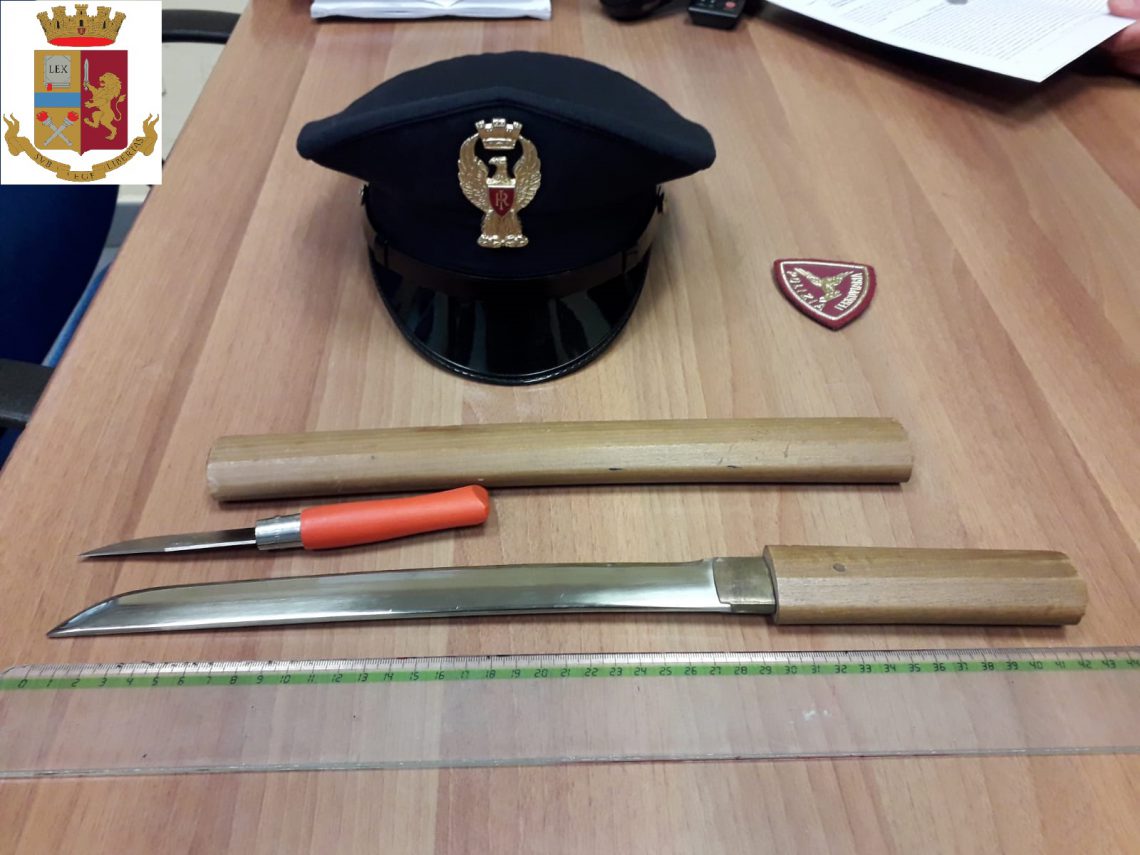 Lo spadino e il coltello, rispettivamente 27 e 8 cm di lama perfettamente affilati e utilizzabili, sono stati sottoposti a sequestro.