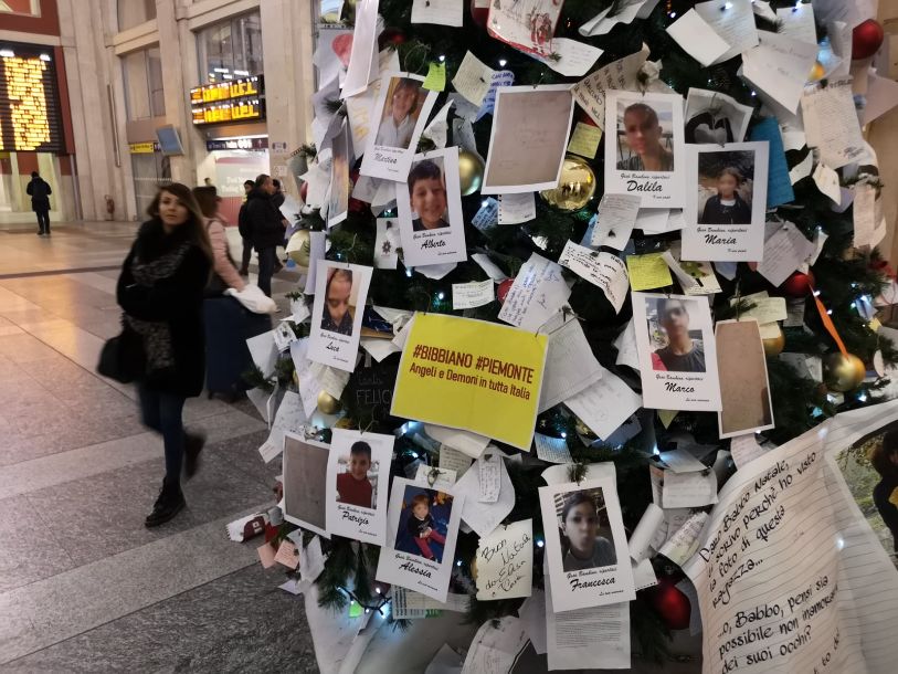 Questa mattina, venerdì 3 dicembre, sull’albero di Natale esposto a Torino nella stazione Porta Nuova, accanto alle letterine che per tradizione vengono attaccate a centinaia ai suoi rami, sono comparse le foto di bambini allontanati dalle loro famiglie in Piemonte, con richieste commoventi a Gesù bambino di restituire loro figli e nipoti, insieme ai disegni dei bimbi che chiedono di tornare a casa: una scena straziante, necessaria però a smuovere le coscienze, ricordando alla folla dei passanti quanti bambini trascorreranno le feste natalizie lontano dalle famiglie, senza che sia avvenuto nessun abuso o maltrattamento.