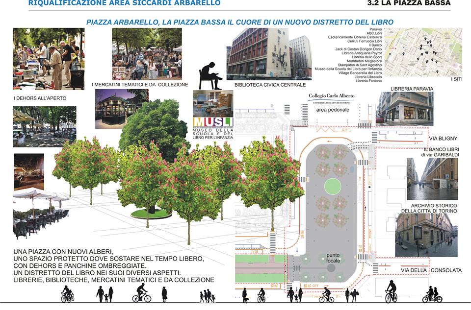 “Verrà creata un’ampia area pedonale centrale alberata, oltre al prolungamento del viale di corso Siccardi. In quest’area troveranno spazio campi sportivi, aree per eventi pubblici e attrezzature per vivere la piazza in ogni momento dell’anno.