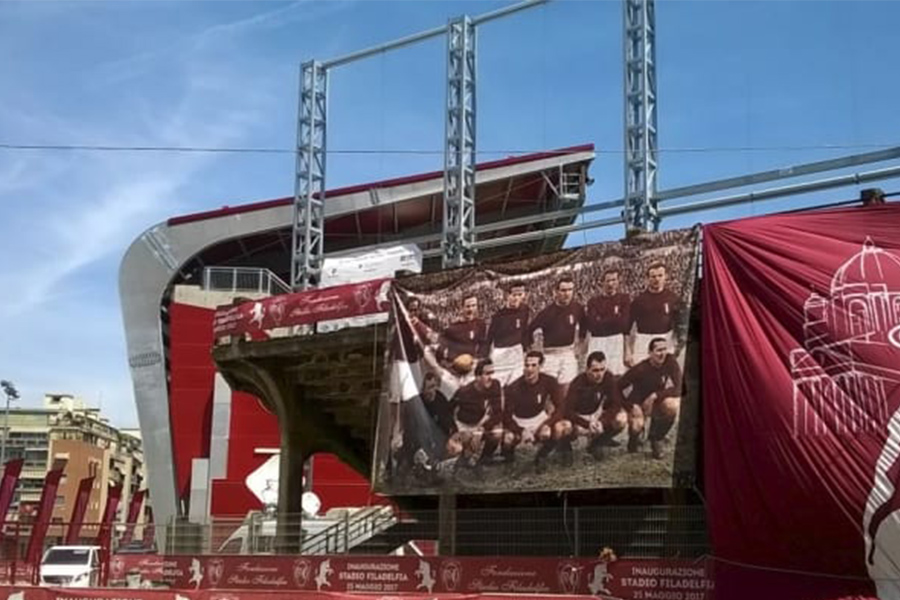 “Per Giampiero Combi – è la dedica scritta sui volantini – “grande campione della Juventus e della Nazionale dell’Italia fascista, la cosiddetta Nazionale del Duce”.