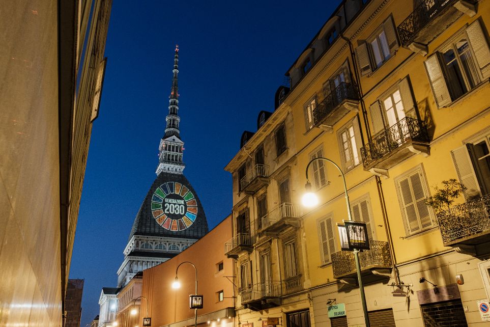 Fino al 5 giugno, in occasione del Festival dello Sviluppo Sostenibile 2019, la Mole Antonelliana si veste con i colori della ghiera delle Nazioni Unite. L’invito a far parte della “Generazione 2030”, titolo dell’evento nazionale del 4 giugno a Torino, alla Nuvola Lavazza, chiederà alla città e ai suoi ragazzi di prendere coscienza dell’importanza dell’azione a cui tutti siamo chiamati per realizzare l’agenda e i 17 Global goal dell’ONU: una call to action a cui risponde anche il progetto Toward2030 sostenuto dalla Città di Torino, Asvis e Lavazza, che vede 17 muri della città parlare degli obiettivi sostenibili attraverso il linguaggio della street art”.