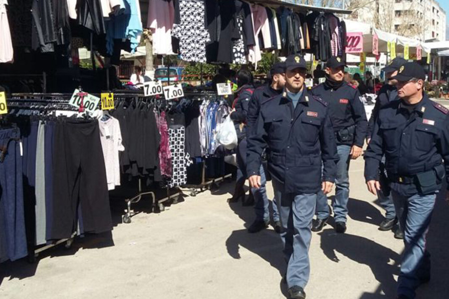 Controlli degli agenti del Commissariato di Rivoli all’interno della fiera mercatale in corso Susa. Mentre i poliziotti si muovevano fra i banchi, il trambusto proveniente da una zona del mercato ha attirato la loro attenzione.