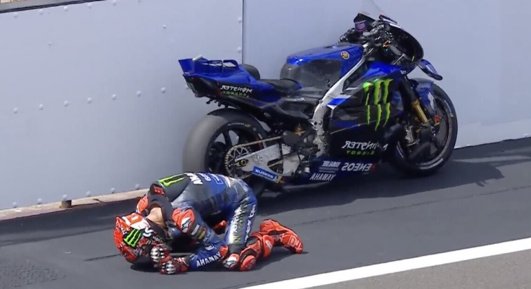 La sua Yamaha M1 ha però ceduto proprio nel momento cruciale: un problema all’abbassatore posteriore, rimasto bloccato, ha reso la moto ingestibile. Quartararo ha rallentato visibilmente, è stato superato da tutti i rivali e si è infine fermato sul rettilineo principale. Disperato, ha sfogato la sua frustrazione sbattendo i pugni sul serbatoio, prima di lasciarsi andare a un pianto inconsolabile con ancora il casco addosso — una scena che ha colpito il cuore di molti appassionati.