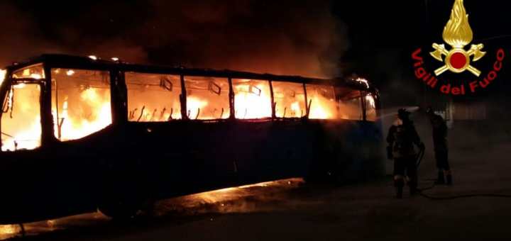 Nuovo incendio di autobus nella notte – Il mezzo completamente distrutto