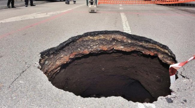 Se fosse passata un’auto di ridotte dimensioni avrebbe potuto essere ingoiata, denunciano i testimoni.