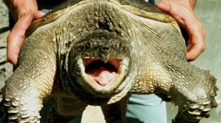 Paura a Torino – Passeggia sul fiume e trova una pericolosa tartaruga alligatore “Ha il morso più potente di uno squalo”