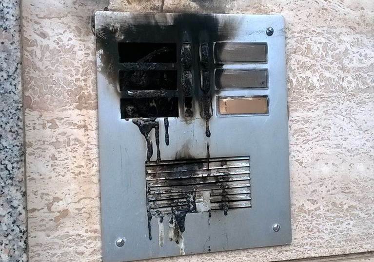 L’hanno fermata proprio mentre la donna era sotto casa dell’ex compagno intenta a bruciargli il citofono dopo aver riempito i muri di scritte.