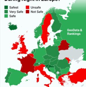 Secondo il Global Safety Report 2025, la sensazione di sicurezza notturna degli italiani è tra le più basse a livello globale: solo il 60% si sente tranquillo a camminare da solo, un dato che relega il Paese al fondo della classifica europea e al 95° posto mondiale, dietro nazioni segnate da instabilità come Ucraina, Niger o Nicaragua. Anche la Francia mostra fragilità: con il 73% si ferma a metà classifica ed è superata da Paesi europei simili e persino da Stati extraeuropei come Egitto o Bangladesh.