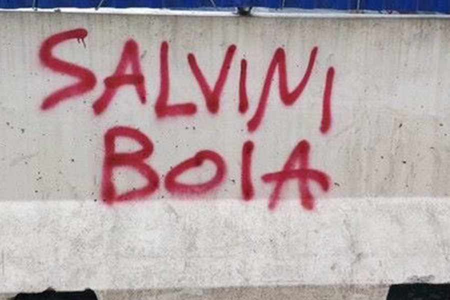 “Salvini boia”, “Salvini appeso” – Nuovo scritte contro il leader della Lega nel centro di Torino
