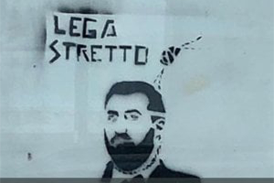 Da ieri i cittadini torinesi hanno potuto osservare in numerate fermate dell’autobus cittadine l’immagine impressa a vernice di Matteo Salvini, ministro dell’Interno e leader della Lega, ritratto con un cappio al collo sotto la scritta “Lega stretto”.