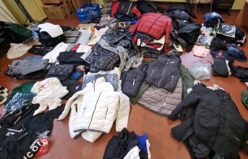 Durante la successiva perquisizione effettuata nell’abitazione del soggetto, gli agenti hanno rinvenuto 623 capi di abbigliamento tra giubbotti, cappelli, cinture, borse e pantaloni di note griffe, oltre 3050 marchi di ogni tipo e marca pronti per essere apposti sui capi di abbigliamento.