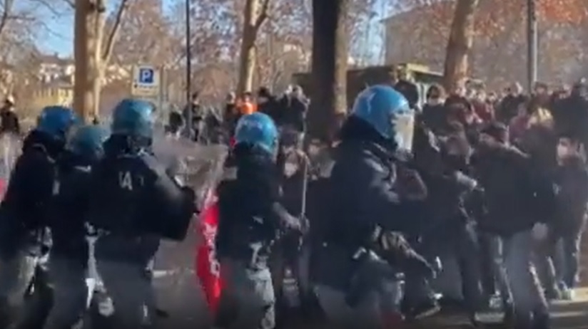 Nonostante le restrizioni circa 200 partecipanti si sono radunati al presidio in piazza Arbarello e da quanto appreso dalla forze dell’ordine avrebbero cercato di forzare gli sbarramenti della polizia anche con un furgone, con l’obiettivo di dirigersi in corteo verso le vie del centro. Per questo motivo è stata necessaria un’azione di alleggerimento degli agenti.