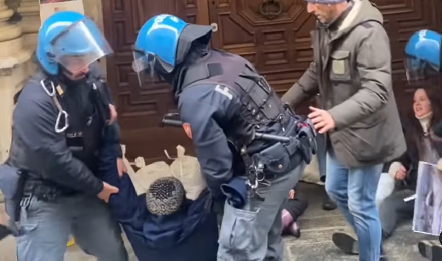 Torino – Attivisti bloccano l’ingresso del Consiglio regionale con sacchi antiallagamento: arriva la Polizia