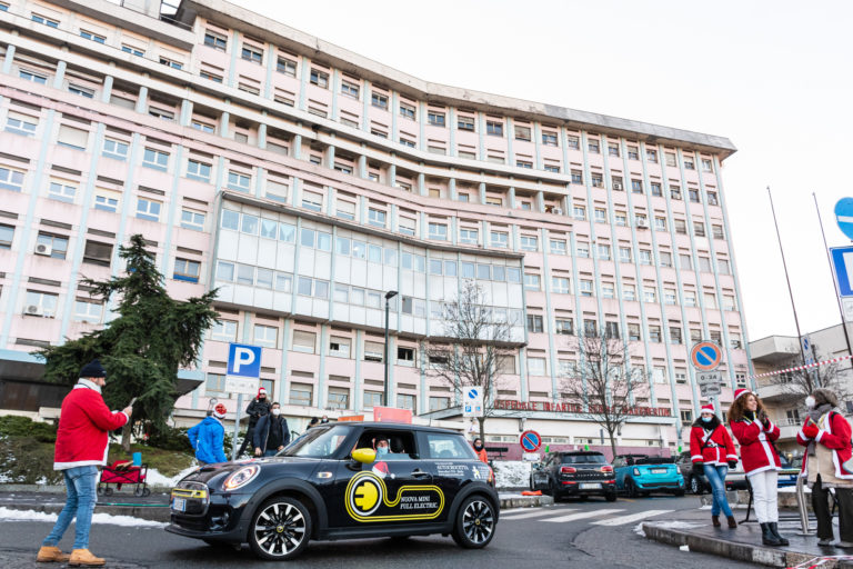 Le auto sono state addobbate a festa e hanno sfilato sotto le finestre dell’ospedale, realizzando una bellissima coreografia natalizia per gli ospiti del polo pediatrico.