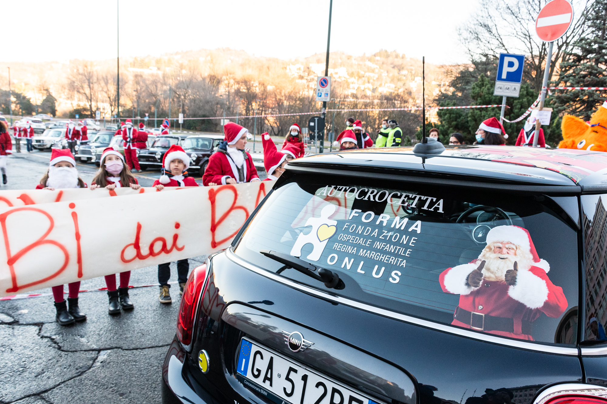 Torino – Autocrocetta per i bimbi del Regina Margherita: sfilano i Babbi Natale e le Mini per i piccoli pazienti