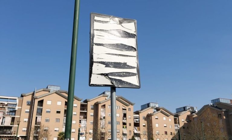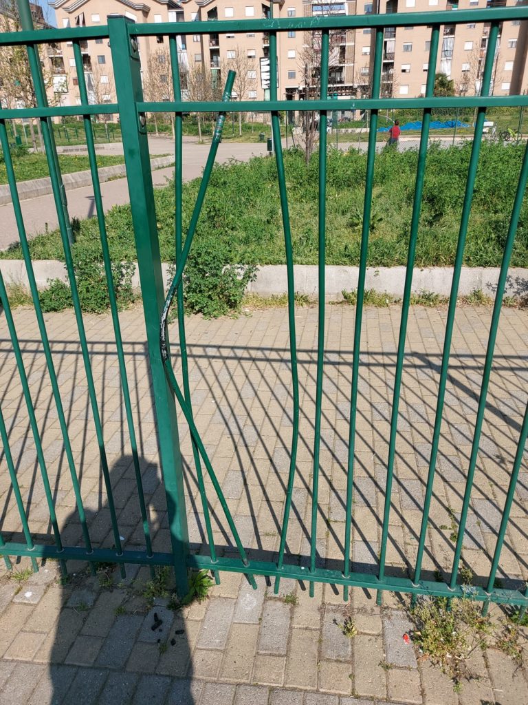 Torino – Cancelli divelti, segnaletica vandalizzata: il degrado dilaga ai giardini Saragat. FOTO