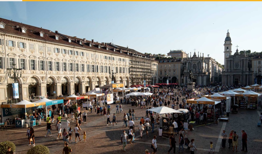 “Torino “en plein air” Il nostro bellissimo cielo blu come tetto – spiegano gli organizzatori – ” la piazza più regale della città come cornice. Perché rinchiudersi in qualche polo fieristico, se intorno a noi abbiamo tanta bellezza? Del resto, non siamo già rimasti chiusi abbastanza?