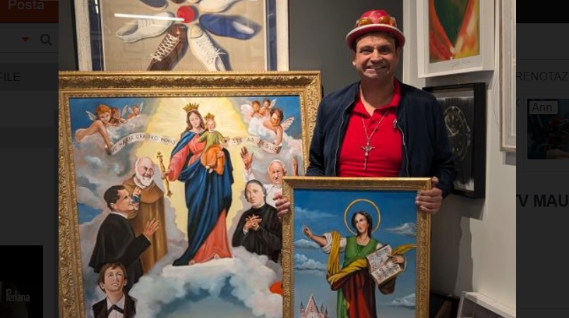 I due quadri, rispettivamente delle dimensioni di 100×140 cm e 50×70 cm, rappresentano “la Gloria di Maria Vergine tra Angeli e Santi, tra cui San Giovanni Bosco, San Domenico Savio, San Pio da Pietrelcina, San Giovanni Paolo II, San Giuseppe Benedetto Cottolengo e San Carlo Acutis. La seconda raffigurazione ritrae San Pancrazio e il Santuario a lui dedicato a Pianezza, una devozione molto importante per me,” ha aggiunto Scandurra.
