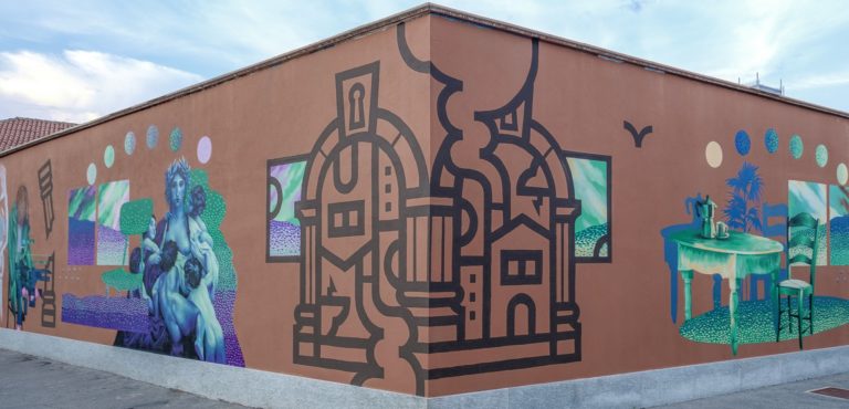 E’ la prima opera collettiva della ripartenza del progetto Murarte 2020, che in questa occasione ha scelto di affrontare il tema del lockdown e delle sue conseguenze, e in special modo su chi maggiormente ha subito o subirà i più duri contraccolpi da questa crisi, che da sanitaria è già mutata in economica.