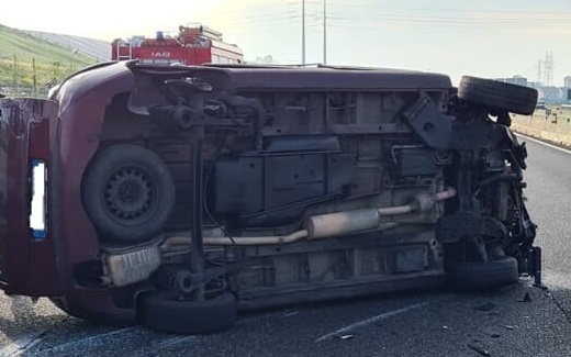 Dopo il tamponamento con un’altra vettura, l’auto si è ribaltata in mezzo alla carreggiata.