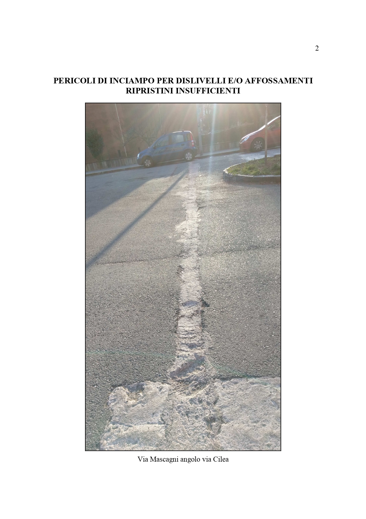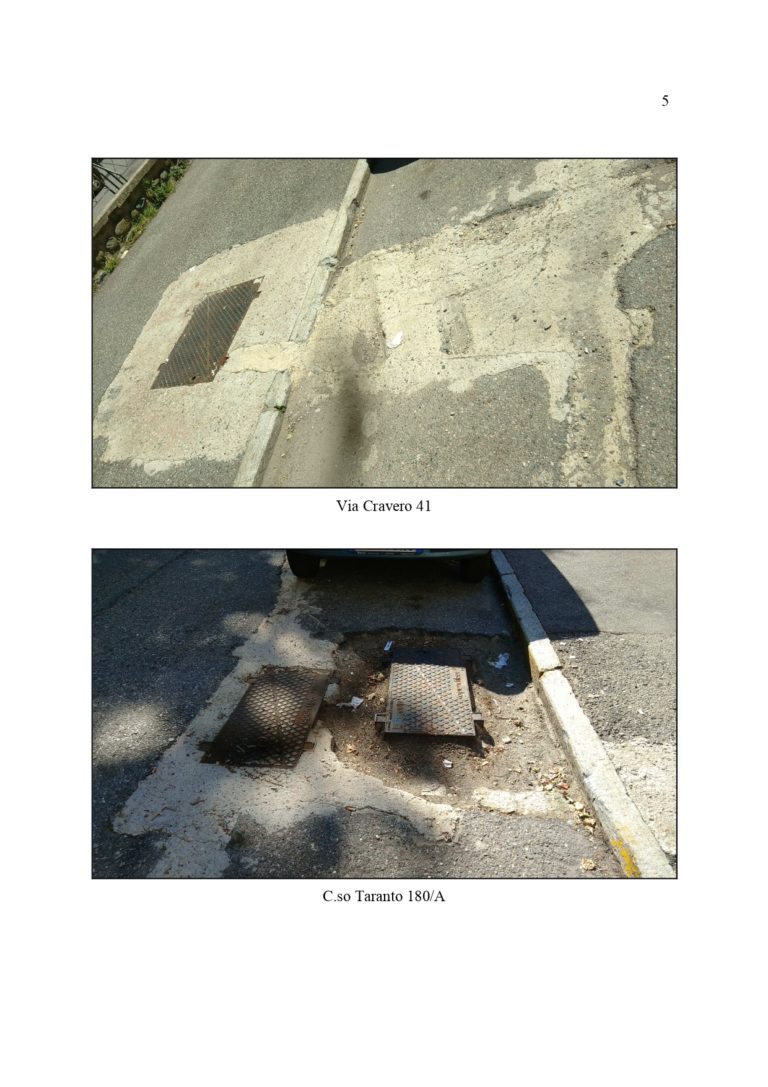 “Infatti, a seguito di lavori eseguiti in maniera approssimativa, si sono venute a creare situazioni di pericolo sia per i veicoli sulle strade che per i pedoni sui marciapiedi così come si può osservare nelle foto, relative ad alcune zone della Circoscrizione 6”