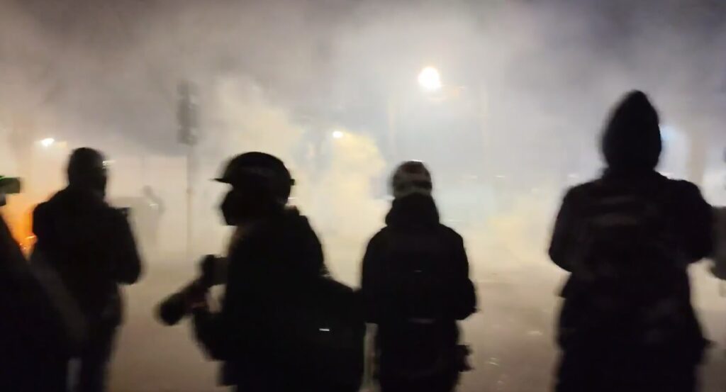 La polizia, schierata in assetto antisommossa, ha reagito con lacrimogeni e idranti per contenere l’avanzata e bloccare ulteriori spostamenti. L’area è stata progressivamente isolata per ragioni di sicurezza, mentre forti esplosioni e una fitta nube di fumo hanno invaso la zona. Residenti e passanti si sono rifugiati all’interno di abitazioni e locali, mentre gli scontri proseguono in una situazione di altissima tensione.