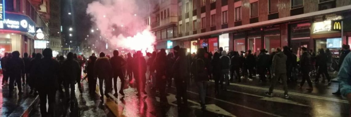 Notte di battaglia e violenza a Torino, fra lanci di petardi, bombe carta, vetrine dei negozi infrante e cariche della polizia.