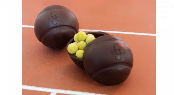 La palla da tennis di cioccolato è disponibile in tutte le botteghe (Torino e Milano) e sullo shop online.