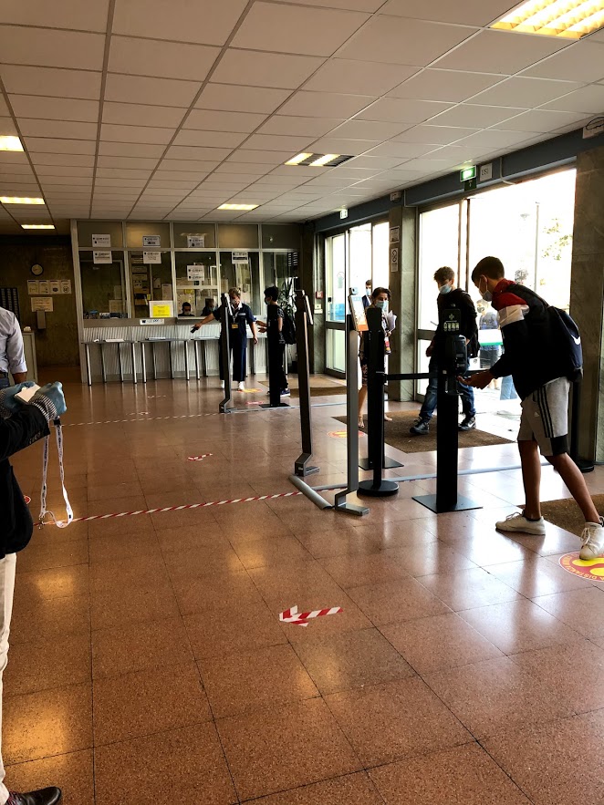 Ogni mattina (e pomeriggio) i ragazzi seguono una serie di misure prima di entrare in classe, per limitare al massimo il rischio Covid.