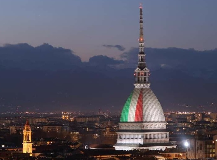 Torino – La Mole splende, illuminata dal tricolore: l’iniziativa per l’anniversario dell’Unità d’Italia