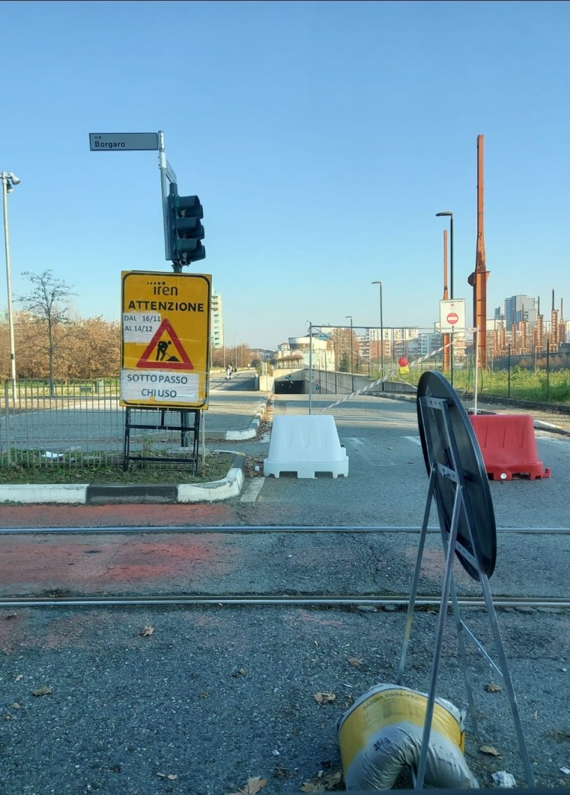 Il sottopasso nel tratto di Corso Mortara, che si imbocca da Corso Potenza in direzione Via Orvieto, è bloccato da settimane, proprio all’altezza della Via Orvieto, a causa di lavori da parte dell’azienda Iren che, iniziati il 16/11, avrebbero dovuto terminare il 14/12 come indicato dalla segnaletica presente.