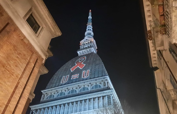 Per due serate fino a ieri, 1 dicembre, la Città di Torino ha illuminato la Mole Antonelliana con il fiocco rosso, simbolo della lotta contro l’AIDS, e con la scritta “U=U”, dall’inglese “Undetectable = Untransmittable” (cioè “non rilevabile = non trasmissibile”), in occasione della “Giornata mondiale contro l’AIDS” del 1 dicembre.