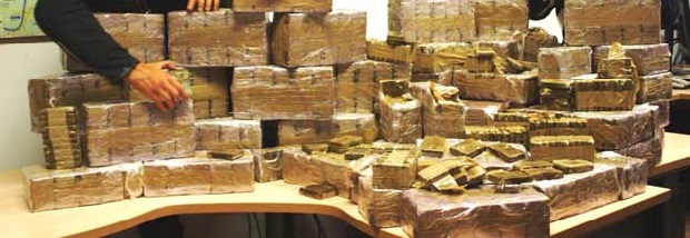 E’ stato rinvenuto oltre un quintale di hashish, diviso in 1090 panetti contraddistinti con varie etichettature tra cui una “mela”, simbolo di una famosa azienda di articoli informatici, la figura di un noto trafficante colombiano, un’aquila, un limone o la foglia di marijuana con una croce.