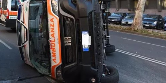 Torino – Paura in centro: ambulanza si scontra con auto e si ribalta