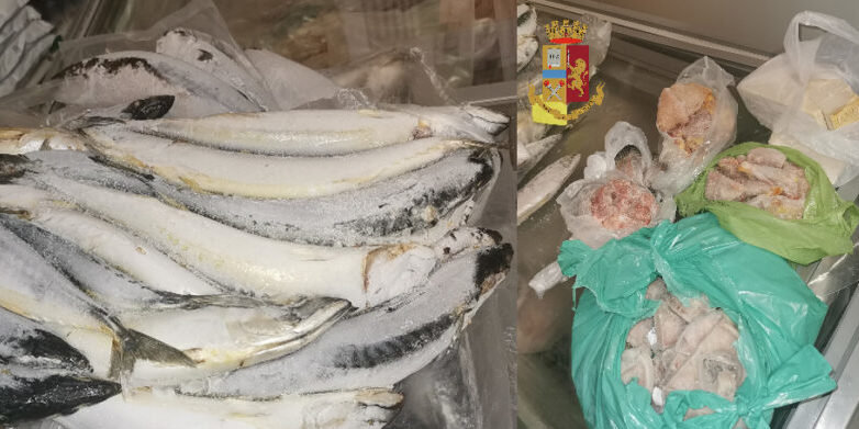 Nei congelatori ubicati in cucina e nel vano deposito sono state trovate diverse scatole di cartone sporche ed alcune buste aperte e ricoperte di ghiaccio, contenenti ravioli, carne, pesce tritato e calamari, privi di etichettatura. Carne di maiale e ravioli ripieni erano stati sistemati su vassoi in acciaio, manchevoli di una qualsiasi copertura.