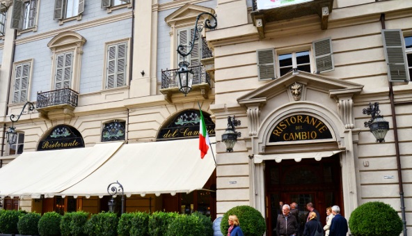 Il Cambio, situato in piazza Carignano sin dalla seconda metà del Settecento, è un simbolo della tradizione gastronomica torinese. Negli anni, sotto la guida della famiglia Denegri, il ristorante è stato recuperato con un approccio “umanistico” e trasformato in un punto di riferimento della ristorazione cittadina, includendo il Bar Cavour e la Farmacia del Cambio, ampliando così la sua offerta. Questo concetto di diversificazione è stato descritto da Daniele Sacco, per oltre quattro decenni direttore del ristorante e ora in pensione, come una vera “democratizzazione del prodotto”.