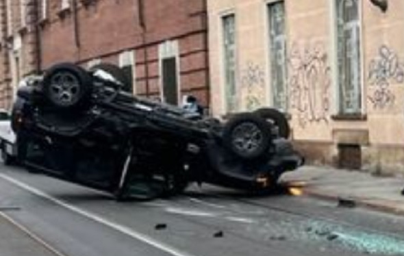Torino – Suv si ribalta in centro, in via Accademia Albertina: due feriti.