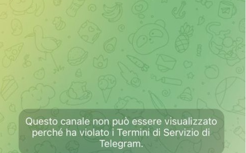 “Questo canale non può essere visualizzato perché ha violato i Termini di Servizio di Telegram”. E’ il messaggio che compare da questa notte sulla chat ‘Basta Dittatura’.